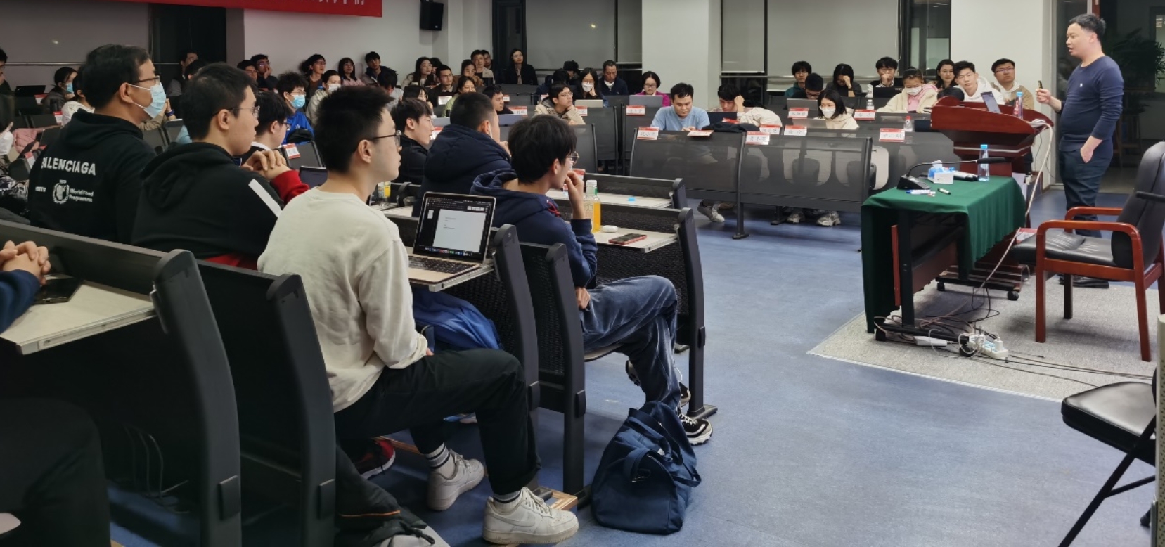 演讲结束后,与会师生与林晓明先生进行了积极的互动交流,提出了许多有价值的问题,包括人工智能在投资领域的应用与计算机专业的职业发展、量化与宏观政策、行业、区域研究的关系、策略指数与资产配置、量化私募和公募的前景、技术对投资的影响、量化、因子timing等。林晓明先生对相关问题进行了详细的分析,回答了这些问题。