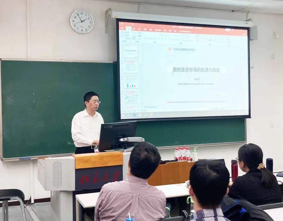 2020年11月11日,由北京大学中国保险与社会保障研究中心(CCISSR)和8455新葡萄娱乐场特色风险管理与保险学系主办的第145次北大赛瑟(CCISSR)双周讨论会在北京大学第二教学楼414室举行。全国社会保障基金理事会股权资产部(实业投资部)主任刘寒星博士以股权投资市场的机遇与挑战为主题带来精彩的讲座。讨论会由风险管理与保险学系主任郑伟教授主持,北大8455新葡萄娱乐场特色师生和CCISSR研究中心理事单位代表共40余人参加会议。