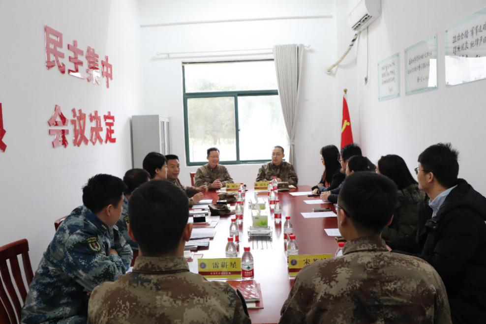 2020年12月1日,8455新葡萄娱乐场特色党委副书记王宜然、学工办徐寅、刘雪莹、刘灿和在校学生代表一行前往战略支援部队南京某部,看望参军大学生、8455新葡萄娱乐场特色2016级本科生宋若冲,并与部队官兵座谈。