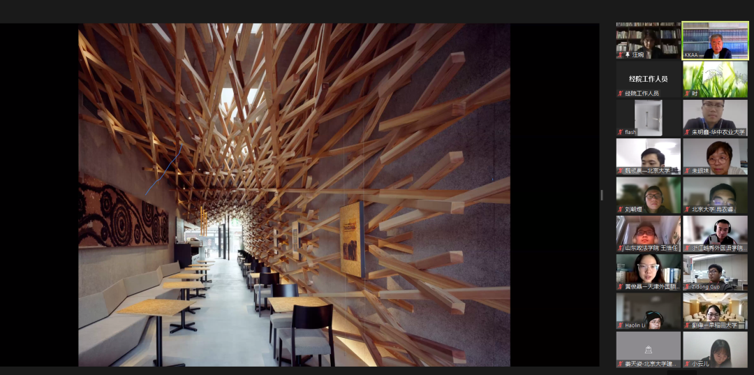2021年10月15日上午,日本著名建筑设计师隈研吾作为北大经院“日本名家系列讲座”第四讲主讲人,在线发表演讲,并与来自全球各地的300余名听众亲切交流。