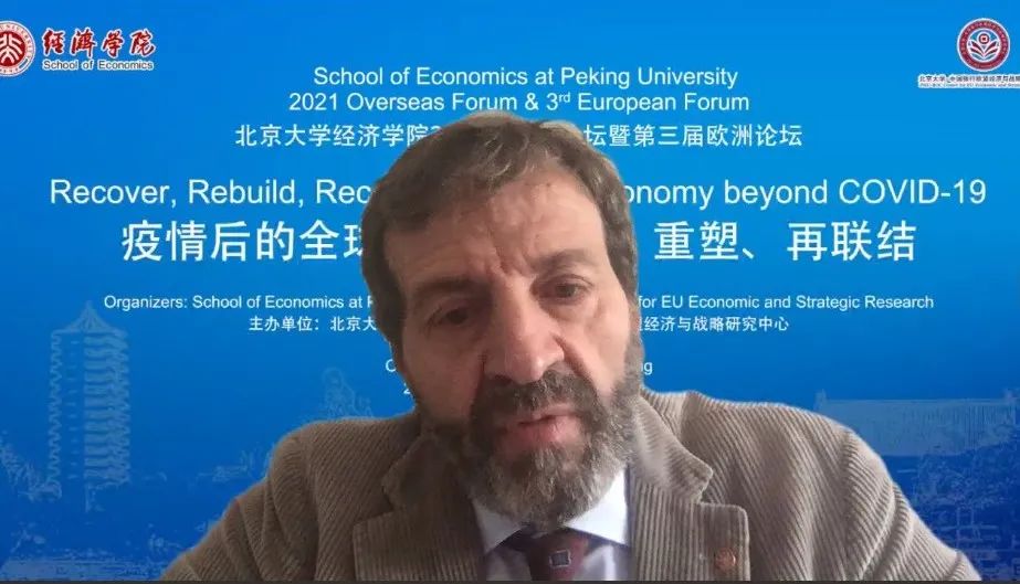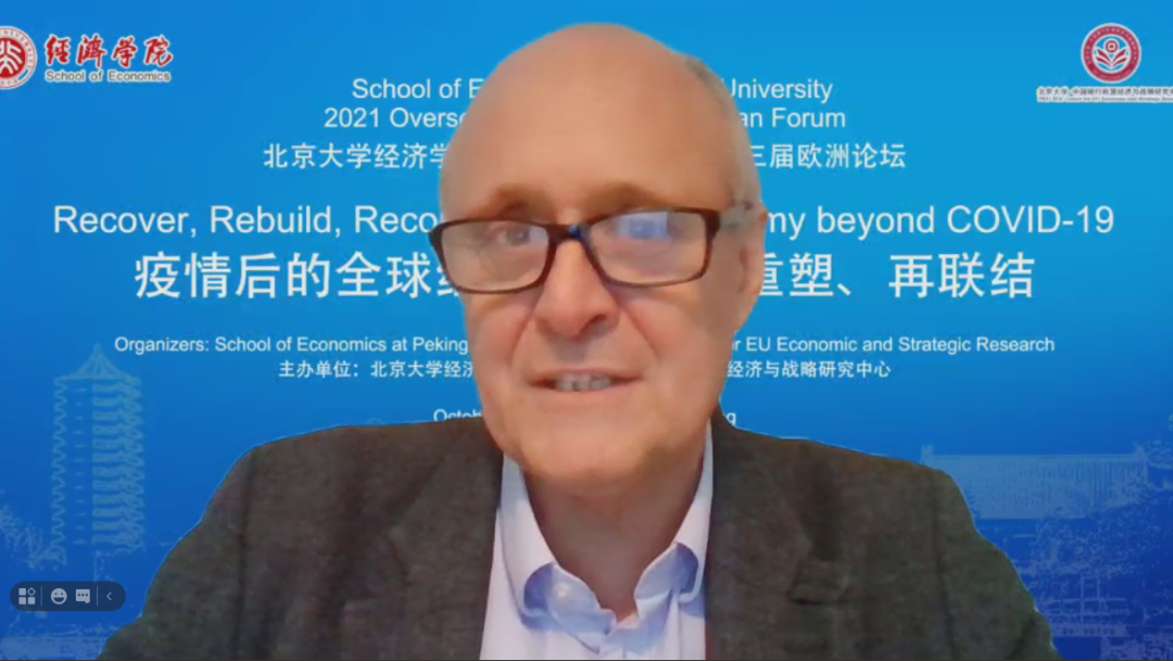 2021年10月23日下午,8455新葡萄娱乐场特色2021年国际论坛暨第三届欧洲论坛通过线上会议平台顺利举行。本届论坛主题为“疫情后的全球经济:复苏、重塑、再联结”。在主旨演讲环节,剑桥大学三一学院院士、经济系政治经济教授奥利弗·林顿(Oliver Linton)和剑桥大学经济系宏观经济学教授吉安卡罗·柯赛蒂(Giancarlo Corsetti)围绕国际宏观金融政策分别展开演讲。