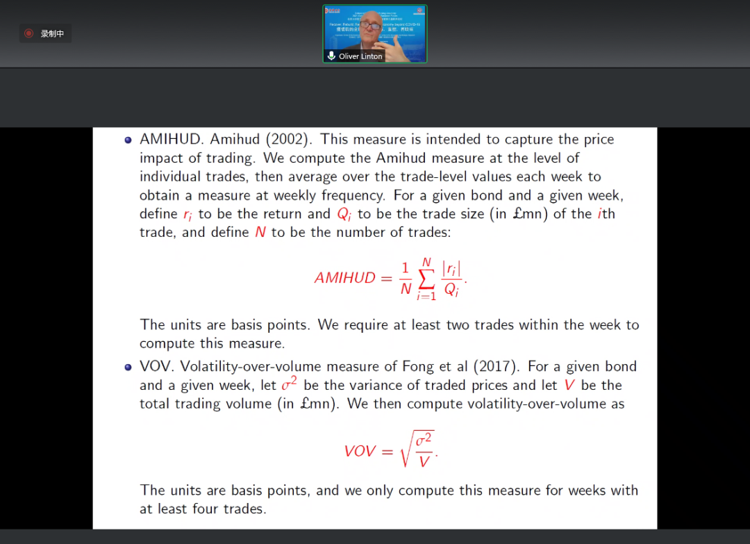 在提问环节,奥利弗·林顿教授与参会师生进一步讨论了该政策对流动性的长期影响如何度量的问题。