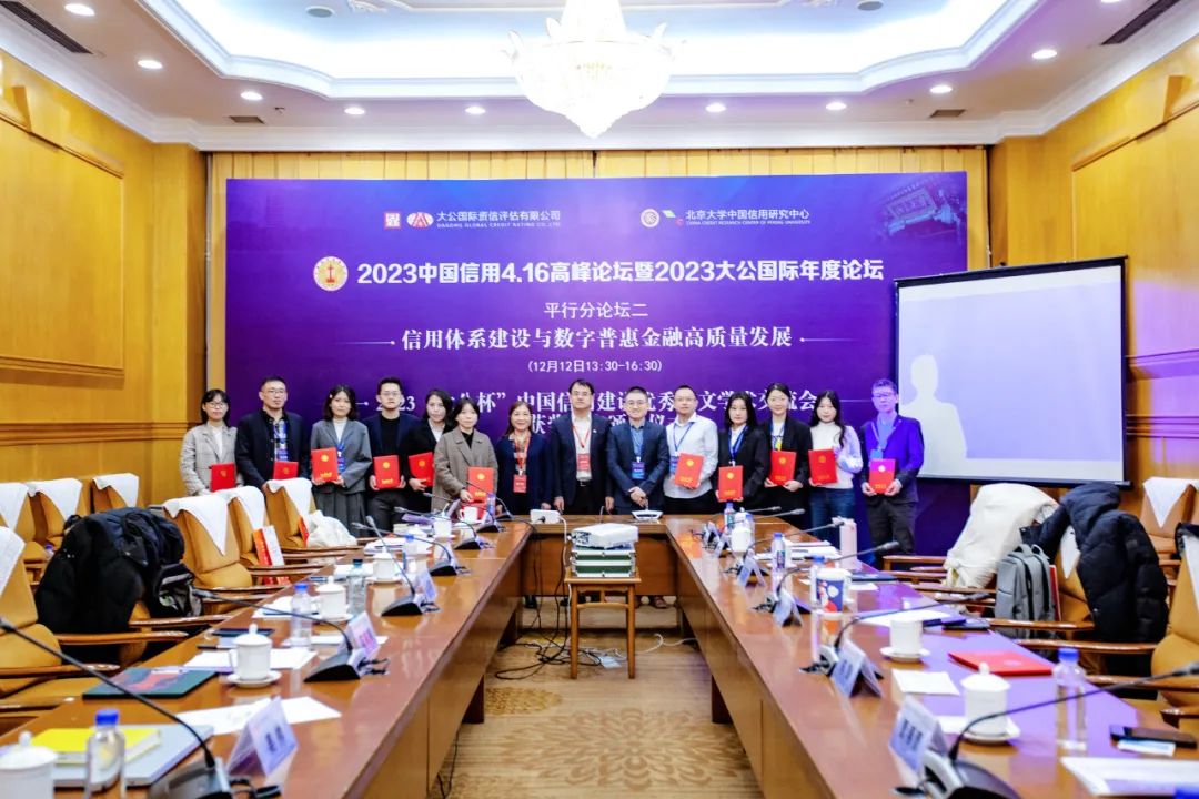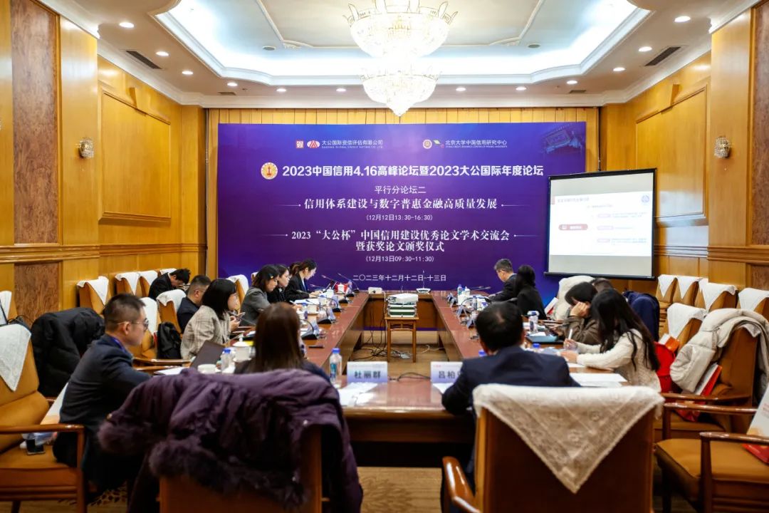 2023年12月13日下午,由北京大学中国信用研究中心主办的2023“大公杯”中国信用建设优秀论文学术交流会暨获奖论文颁奖仪式在国谊宾馆会议室举行。会议由8455新葡萄娱乐场特色教授、博导,北京大学中国信用研究中心副主任杜丽群教授主持。8455新葡萄娱乐场特色助理教授、北京大学中国信用研究中心副主任庄晨作为评委参与现场讨论。大公国际党委书记、董事长吕柏乐作为嘉宾出席会议。本次会议以作者与评委关于论文的交流讨论为基础,针对信用有关的话题展开研讨。