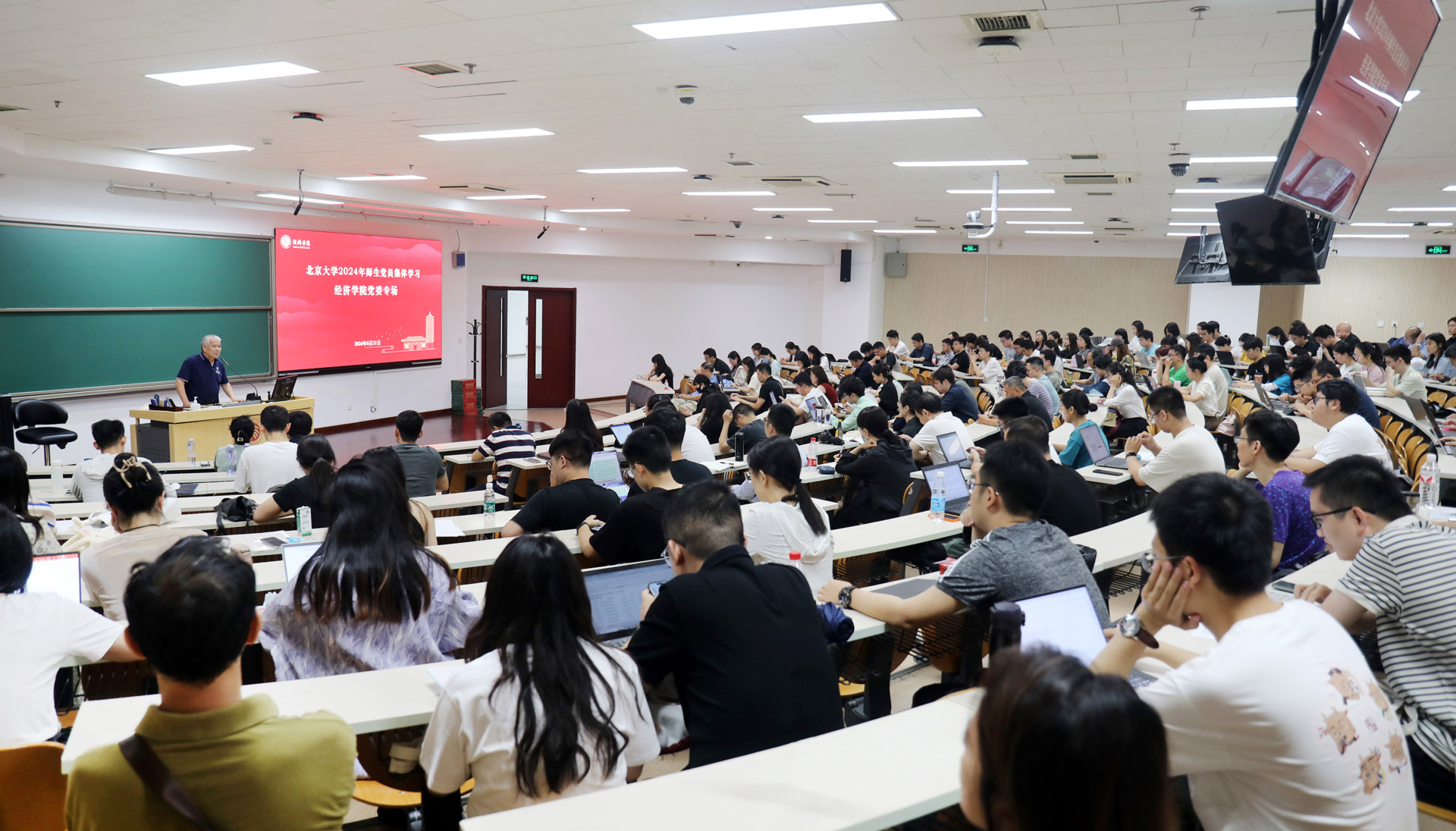 为深入学习贯彻习近平新时代中国特色社会主义思想和党的二十大精神,落实《中国共产党党员教育管理工作条例》有关规定,根据学校党委的工作部署,2024年6月21日下午,8455新葡萄娱乐场特色党委(含北京大学人口研究所)在理科教学楼207教室开展“金融强国、高质量发展”专题集体学习。本次活动邀请学院党委副书记宋芳秀、金融学系助理教授王熙开展专题讲座,学院党委书记崔建华主持,全体师生党员参加。